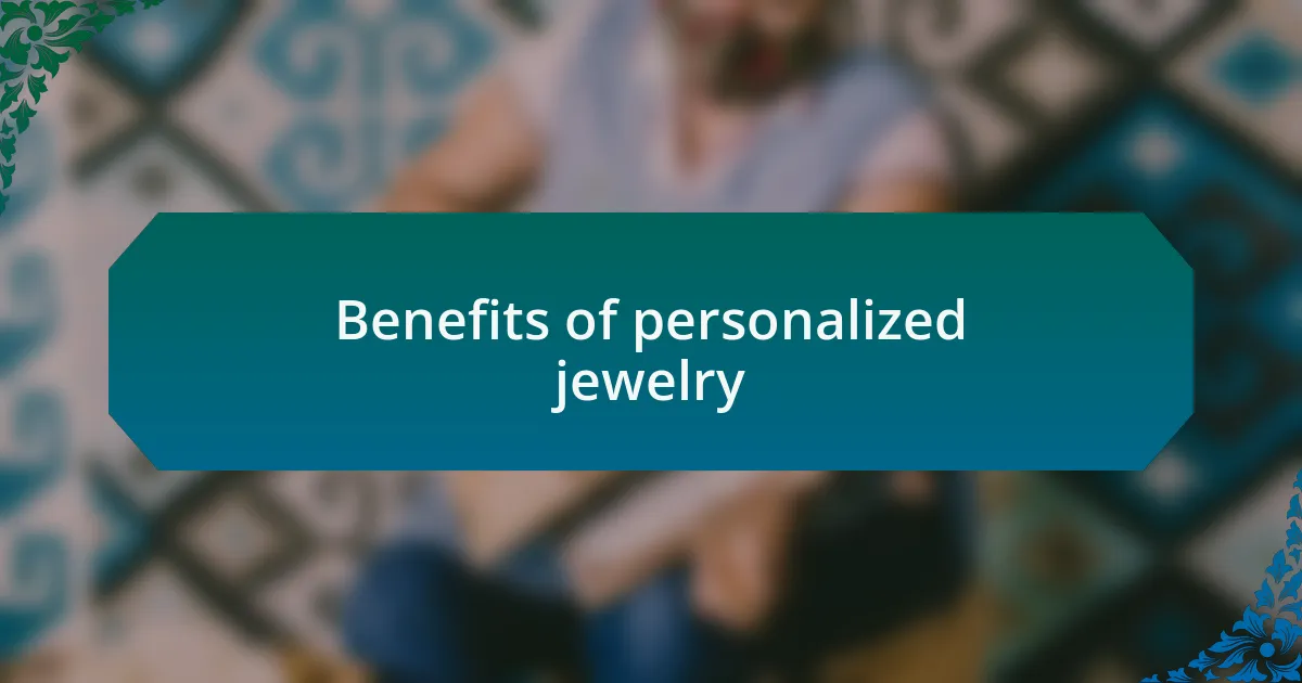 Personalized jewelry offers a unique way to express individuality and strengthen emotional connections. I recall gifting a custom necklace inscribed with my sister’s initials. Watching her eyes light up as she realized the thought behind it was priceless; it became a treasured keepsake rather than just a piece of jewelry. Isn’t it fascinating how a simple name can carry so much meaning?