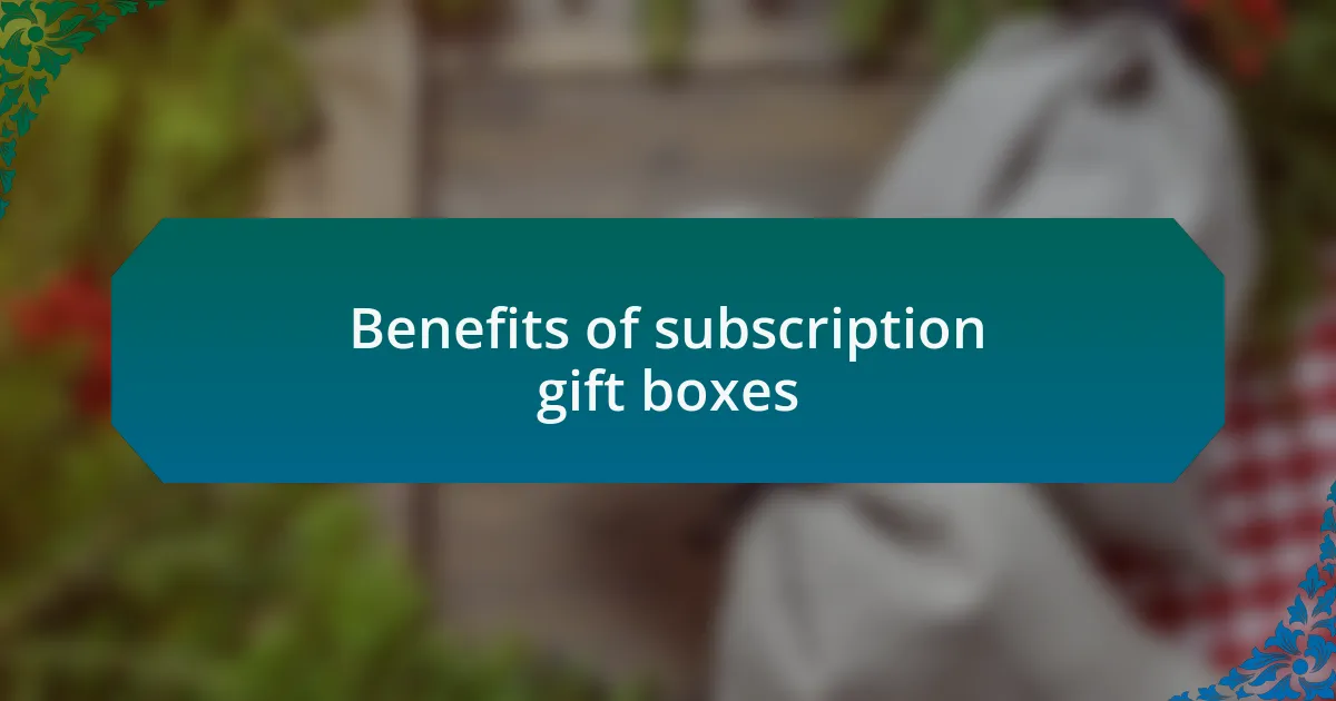 Another significant benefit is the opportunity for personalized curation. I recall a subscription box that aligned perfectly with my love for sustainable living. Not only did it introduce me to eco-friendly brands, but it also helped me integrate more conscious choices into my lifestyle. This tailored experience made me feel understood, and I found myself looking forward to each delivery with genuine excitement. How often do gifts really reflect our personal values?