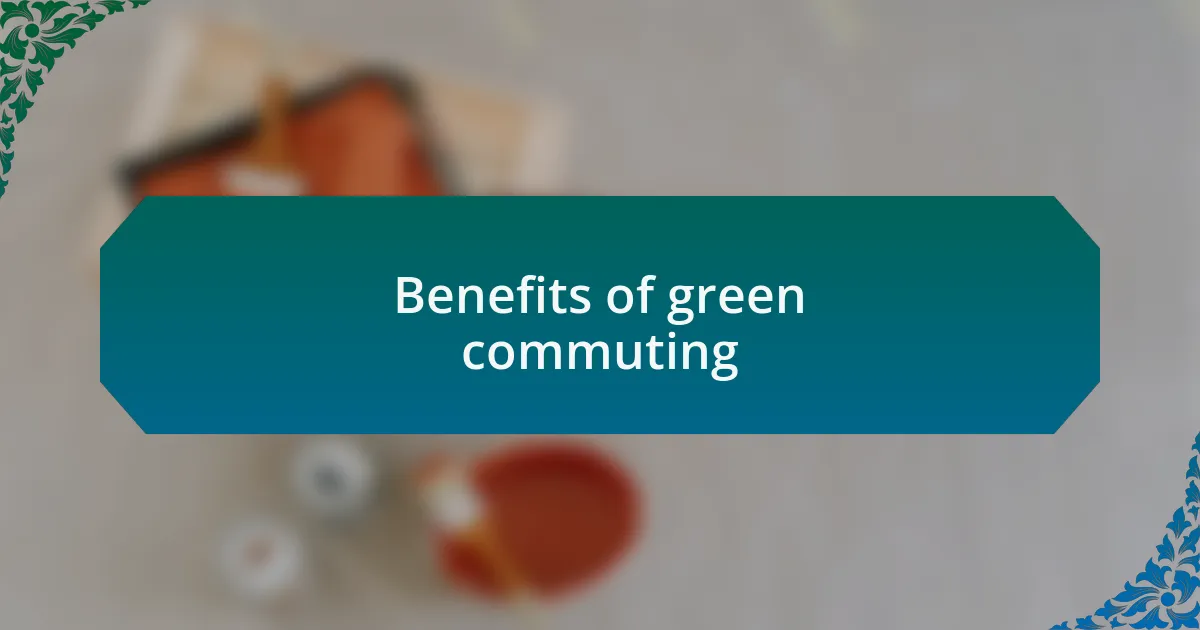 One of the most significant benefits of green commuting is its positive impact on our health. After I started walking part of my commute, I noticed a remarkable boost in my energy levels. Isn’t it incredible how a little exercise can enhance your mood for the entire day? The fresh air and physical activity have a way of shaking off stress, making the journey just as rewarding as the destination.