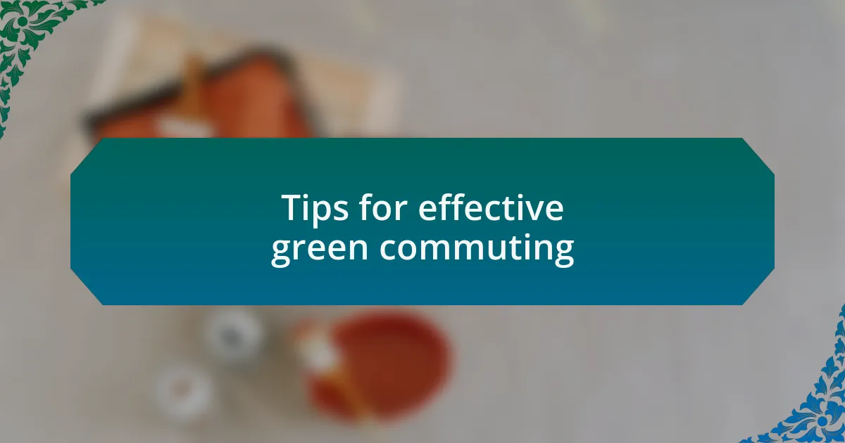 Navigating the world of green commuting can be more enjoyable with a bit of planning. I’ve started mapping out my routes to discover bike lanes and quieter roads. It’s fascinating how a simple adjustment in direction can lead to unexpected discoveries, like a quaint coffee shop that has now become my favorite pit stop. Have you thought about how small changes in your daily route could enhance your travel experience?